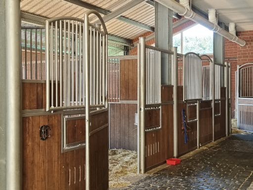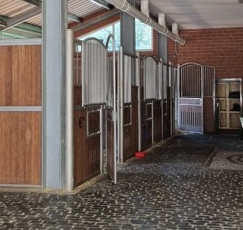 Zur Ausstattung jeder Box gehören eine Heuraufe sowie ein beheiztes Tränksystem, das auch in den Wintermonaten eine zuverlässige Wasserversorgung gewährleistet. Die Kombination aus großzügigen Boxen, funktionaler Ausstattung, direktem Paddockzugang und der Möglichkeit zu sozialen Kontakten schafft optimale Voraussetzungen für eine artgerechte Haltung sowie das langfristige körperliche und mentale Wohlbefinden der Pferde.
